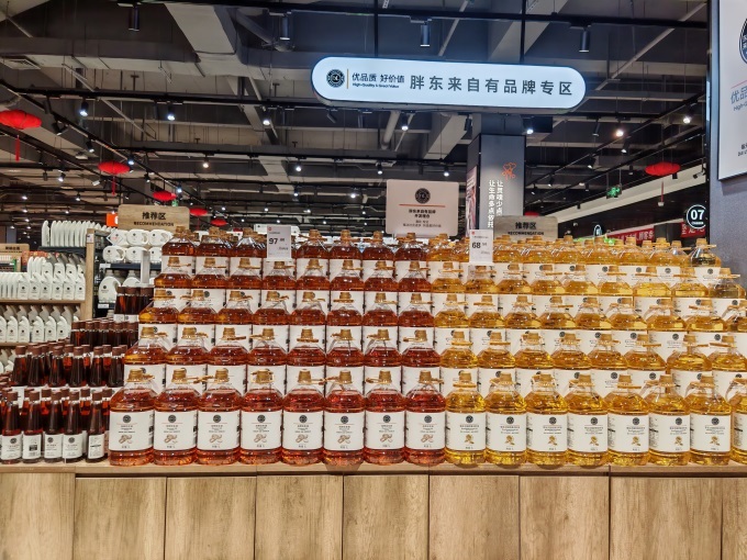 走進(jìn)煥然一新的賣場,新增的胖東來自有品牌專區(qū)成為亮點(diǎn),DL果汁、精釀小麥啤酒、燕麥脆、香氛洗衣凝珠等網(wǎng)紅商品觸手可及,讓社區(qū)居民免去代購奔波。