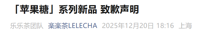 “蘋果糖”系列新品遭吐槽,樂樂茶發(fā)布致歉聲明