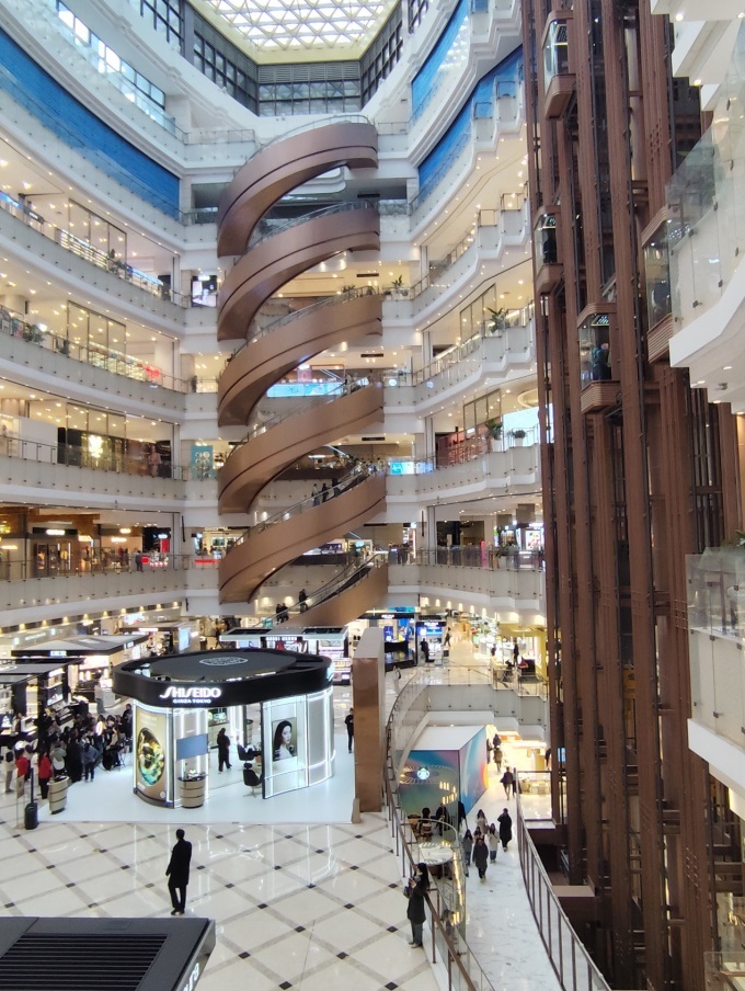 從商場現(xiàn)有結(jié)構(gòu)看,一個大的共享空間(令人羨慕),以及作為代表性和唯一性的旋轉(zhuǎn)手扶梯,這兩個部分相信在改建時不會改變。那么,一個購物中心的模式在建筑結(jié)構(gòu)上是支持的。因而,公告中的“空間運營”一句在商場結(jié)構(gòu)上是不存在障礙的,不過,難在意識和認知。因為購物中心的中庭與百貨在如何使用上,主要的分歧是觀念。