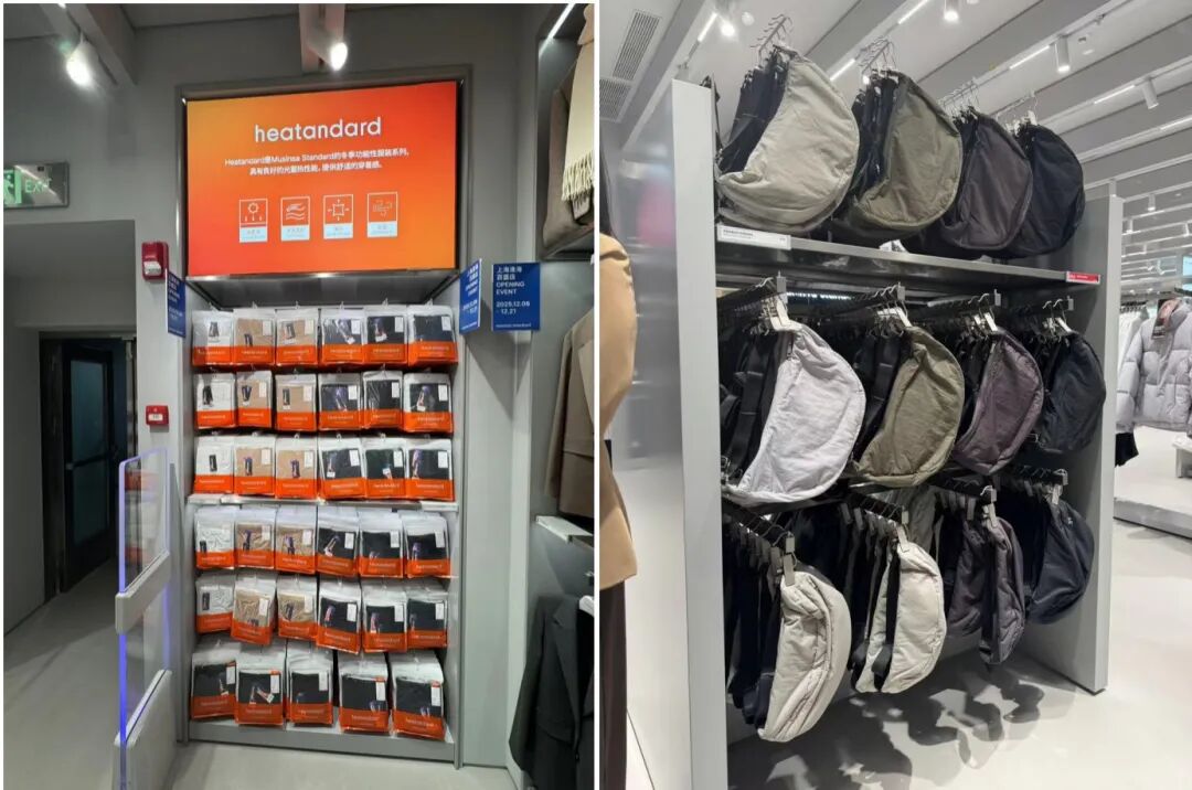 門店內(nèi)不少主打系列幾乎都能在優(yōu)衣庫找到定位類似的產(chǎn)品。門店陳列的冬季功能性服裝系列heatandard與優(yōu)衣庫的heattech保暖技術(shù)系列有異曲同工之處;福餃包也與優(yōu)衣庫近年來在中國暢銷的餃子包造型十分類似;適合亞洲女性多樣版型的牛仔褲系列也和優(yōu)衣庫相差無幾。