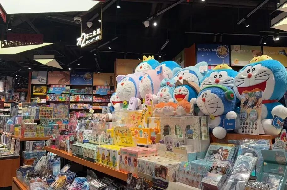現(xiàn)場既有哪吒等熱門國產(chǎn)IP,也能看到黃油小熊、蠟筆小新等人氣形象,再加上不少限定商品的亮相,讓排隊的人群里不僅有帶著孩子的家長,更有大量為特定IP而來、在傳統(tǒng)文具店鮮少能看到的年輕人。
