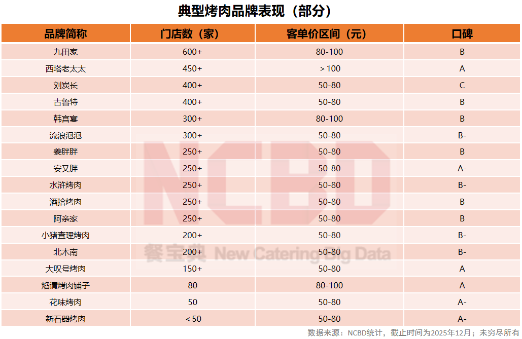 近日,餐飲大數(shù)據(jù)研究與認(rèn)證機(jī)構(gòu)NCBD(餐寶典)發(fā)布《2025-2026中國烤肉品類發(fā)展研究報告》,報告包括烤肉的分類、市場規(guī)模、企業(yè)數(shù)量、典型品牌、消費(fèi)者畫像、差評分布、自助烤肉的痛點(diǎn)等內(nèi)容。