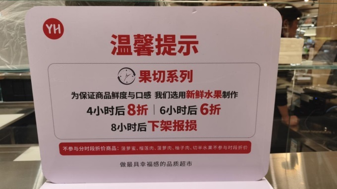 門店嚴格執(zhí)行商品溯源管理,查驗追溯憑證、檢測報告與檢疫證明,對新鮮果切嚴格執(zhí)行“468原則”——切好后超過4小時八折、6小時六折、8小時下架。葉菜、肉禽、水果、水產(chǎn)等部分商品也會根據(jù)情況進行日清折價,拒絕隔夜銷售,全力守護消費者“舌尖上的安全”。