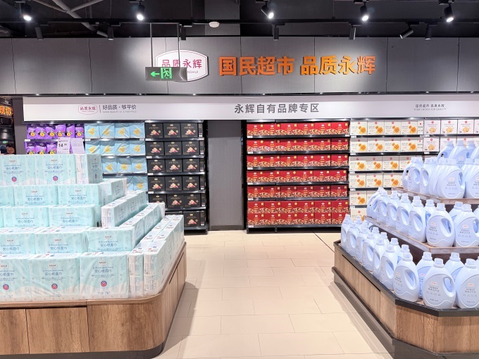 特色專(zhuān)區(qū)提升體驗(yàn):門(mén)店設(shè)立“胖東來(lái)商品專(zhuān)區(qū)”,陳列DL糧油、啤酒、果汁、毛巾等近60支特色商品。同時(shí),永輝自有品牌矩陣如品質(zhì)永輝橙汁、洗衣液、醬油等多支商品,以高質(zhì)價(jià)比滿足家庭核心需求。食百區(qū)還增設(shè)“魔童專(zhuān)區(qū)”,聚焦親子與潮玩。