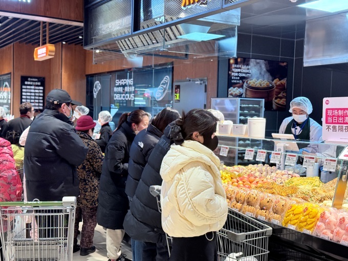 熟食烘焙煙火氣足:熟食區(qū)匯聚了撈汁小海鮮、鍋包肉、奧爾良烤雞等,并特別引入蕪湖紅皮鴨、鹵鵝等本地特色,以及冰糖葫蘆等地方小吃。