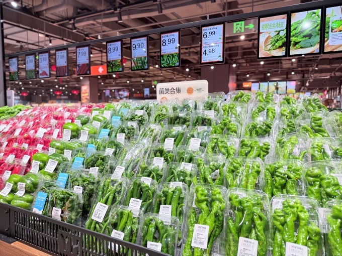以悅方ID MALL店為例,蔬果區(qū)既有粉西紅柿6.99元/斤、黃瓜4.99元/斤等基礎(chǔ)食材,也有19.9元/斤的干堯榴蓮、9.99元/斤的進(jìn)口黑鉆菠蘿等高品質(zhì)鮮果;水產(chǎn)區(qū)則推出13.9元/條的鱸魚(yú)、17.9元/只的鮮活公大閘蟹,從日常剛需到品質(zhì)升級(jí),全方位滿足不同家庭的飲食需求。