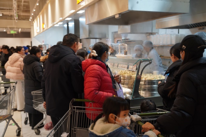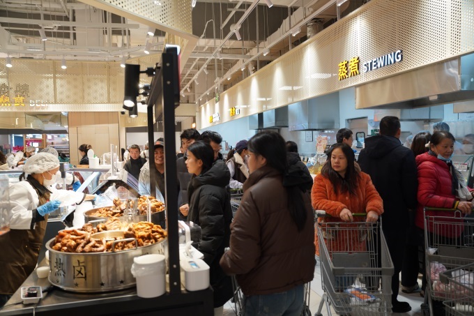 熟食區(qū)新增多個美食檔口,包括北京烤鴨、現(xiàn)炒板栗、奧爾良烤雞、三文魚壽司、手工包點、披薩、涼皮等新品,大大增強了賣場的“煙火氣”。