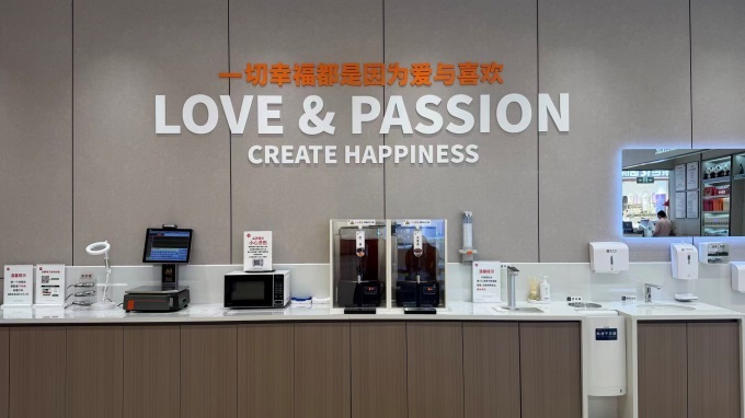 門店通過拓寬通道、取消強制動線提升購物舒適度,并針對周邊大學城商圈引入年輕化外租業(yè)態(tài),增強顧客場內場外可逛性。服務細節(jié)處處體現(xiàn)人文關懷:貨架配備放大鏡、私密商品提供粉色連續(xù)袋、入口設置寵物寄存,并備有寵物飲水設備。便民服務區(qū)新增身高體重測量儀、血壓儀、充電寶、直飲水、四季茶飲、微波爐等設施,同時在收銀線外為購買冷藏、冷凍商品的顧客準備免費冰袋,并提供易碎品打包、免費捆扎、禮品包裝等全方位服務。