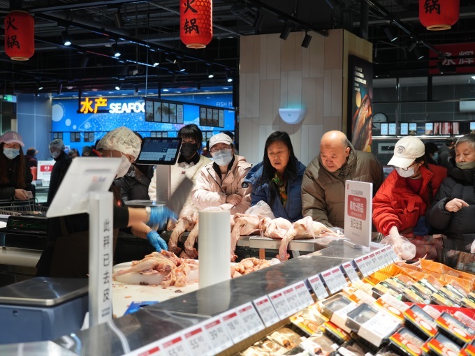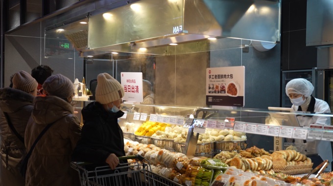 在夯實民生根基上,門店堅守“優(yōu)質(zhì)平價”策略。記者在店內(nèi)看到,醒目的價格標識隨處可見,形成了清晰的惠民矩陣,讓品質(zhì)生活觸手可及:蔬菜區(qū)有0.99元/500g的白菜、3.99元/500g的西蘭花;水果區(qū)提供4.99元/500g的砂糖橘;肉禽區(qū)上線9.9元/20枚的五谷雜糧蛋和6.99元/500g的豬前腿肉;水產(chǎn)區(qū)主打29.9元/500g的鮮活海蝦和9.9元/500g的冷凍海捕帶魚。此外,帝王蟹、澳洲谷飼牛肉等一線城市常見的“高線”食材和現(xiàn)烤羊肉串、現(xiàn)包水餃、現(xiàn)制魚丸等“家庭式”鮮度食材也同步引入,滿足了消費者對全球好物和煙火氣的追求。