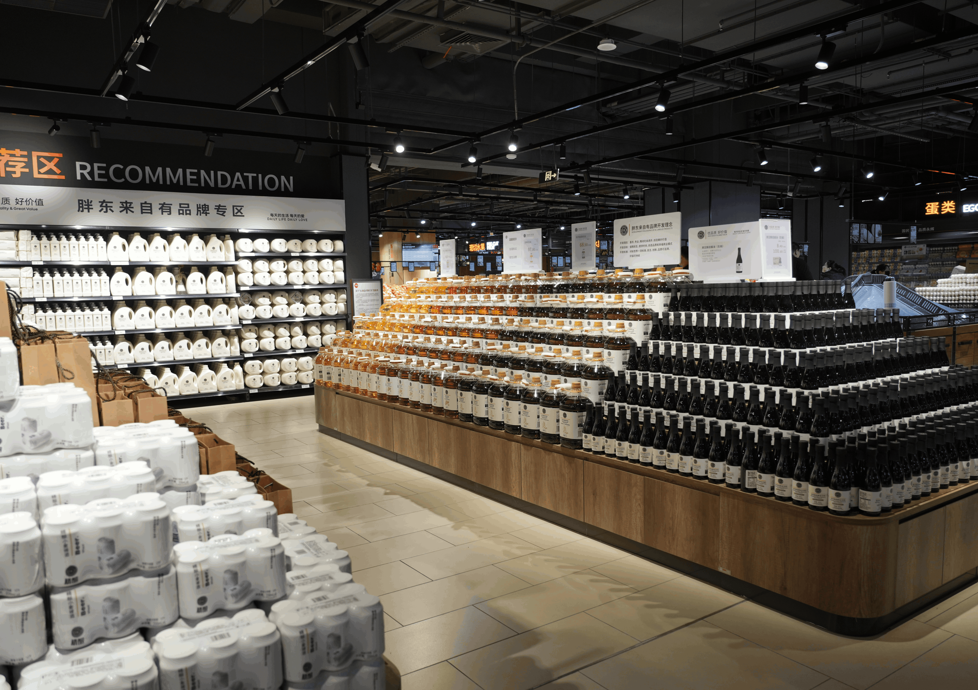 最引人注目的是設(shè)立的胖東來自有品牌專區(qū)。DL果蔬餐具凈、DL飲用天然礦泉水、DL100%葡萄復(fù)合果汁、DL精釀小麥啤酒、DL寶豐自由愛白酒等幾十款網(wǎng)紅商品集中亮相,所有商品均與河南許昌胖東來門店保持同源、同質(zhì)、同價。