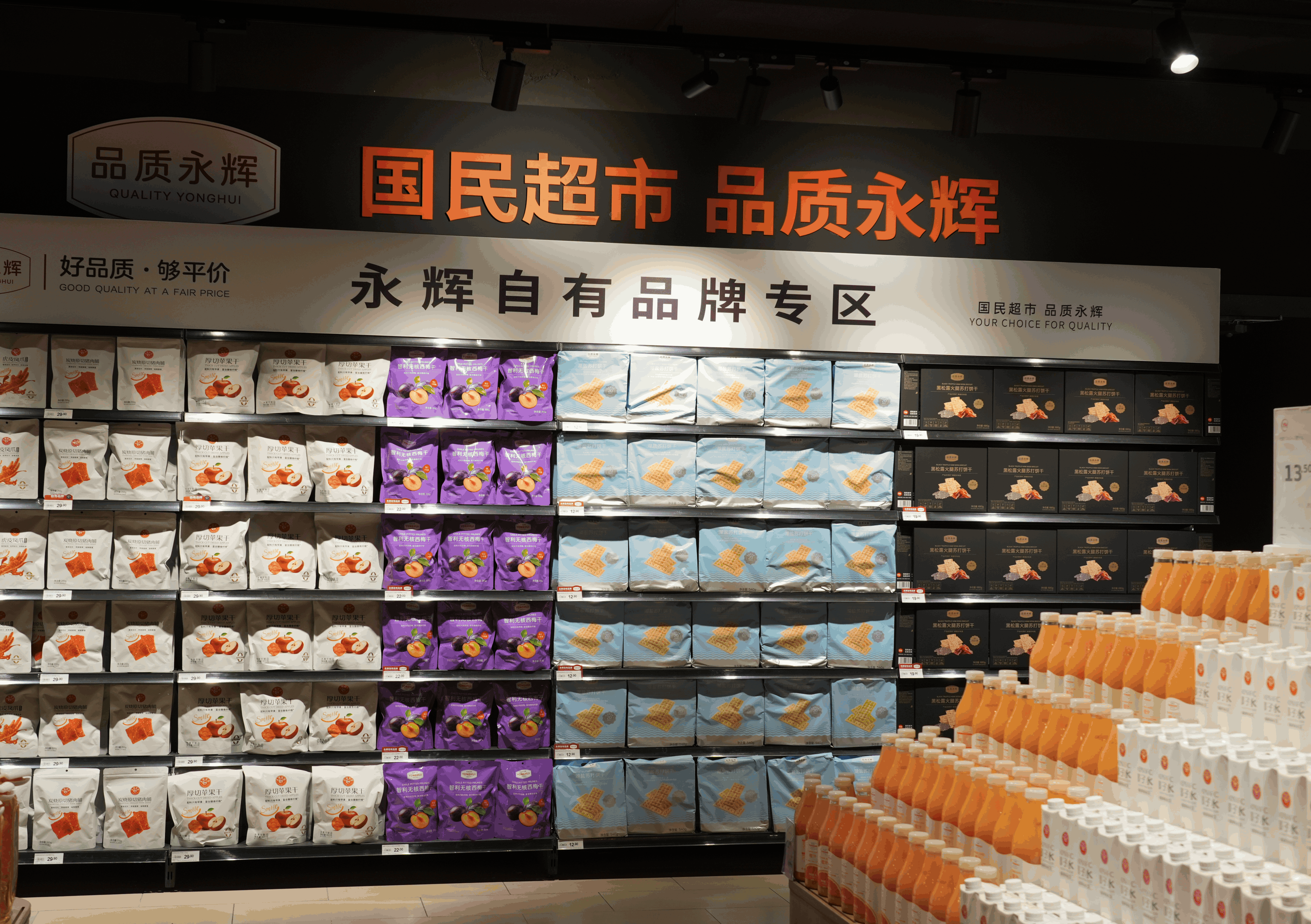 同時,永輝自身的商品體系也同步升級強化!捌焚|(zhì)永輝”作為永輝自有品牌,重點推出了歷經(jīng)439道安全關(guān)卡的橙汁、微膠囊香氛酵素洗衣液、頭道特級生抽、東北長粒香大米等高頻家庭單品,以“好品質(zhì)、夠平價”贏得信賴!坝垒x定制”則代表與伊利等一線品牌的聯(lián)合定制成果,如嚴于歐盟標準的定制鮮牛奶、源自挪威核心產(chǎn)區(qū)E+級品質(zhì)的三文魚等,實現(xiàn)了“大牌品質(zhì)、親民價格”。