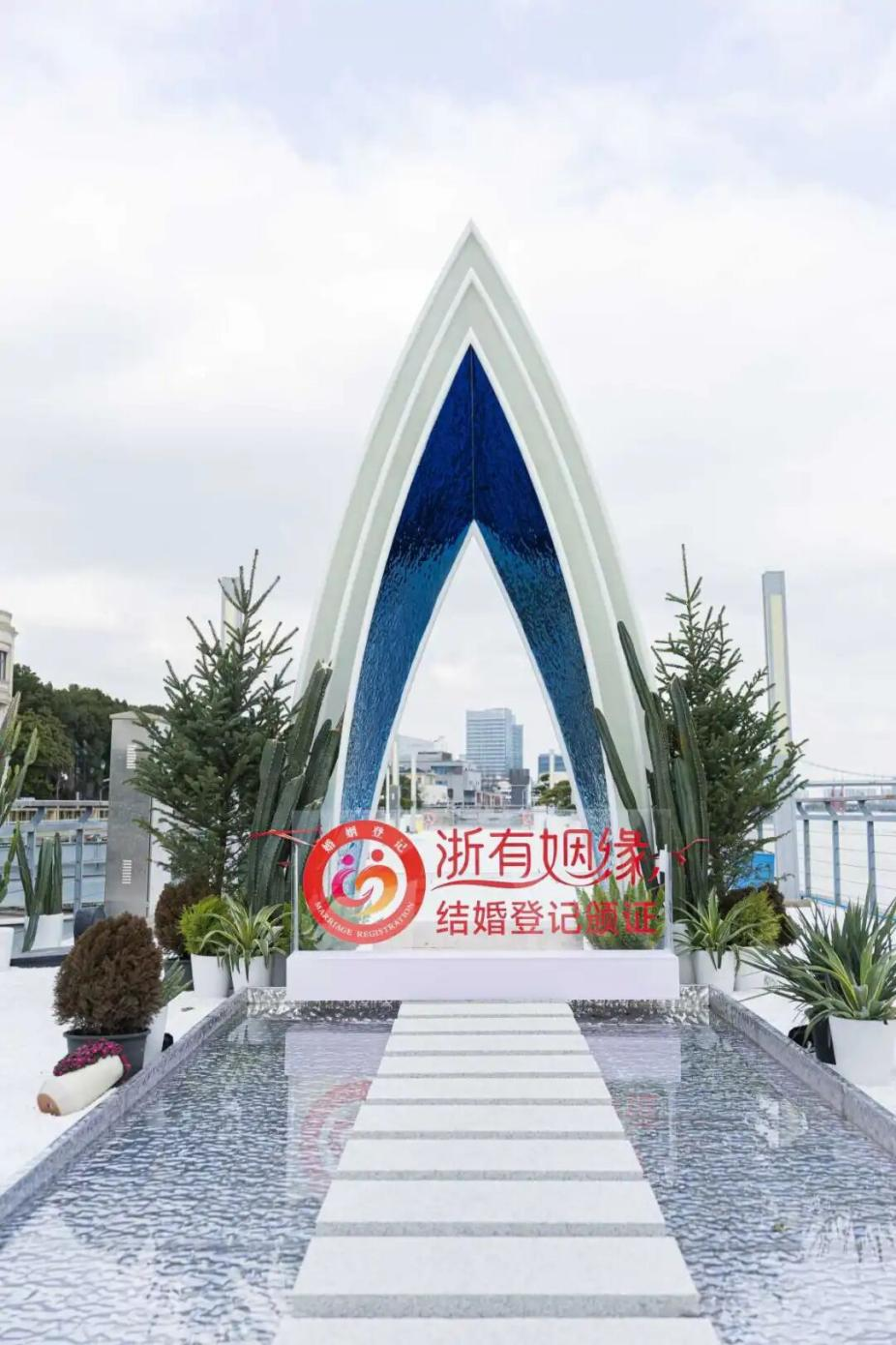 近日,寧波江北區(qū)戶外結(jié)婚登記頒證場(chǎng)所在老外灘“藝術(shù)之舟”正式揭牌啟用。限定款頒證浪漫,從此有了新選擇。
