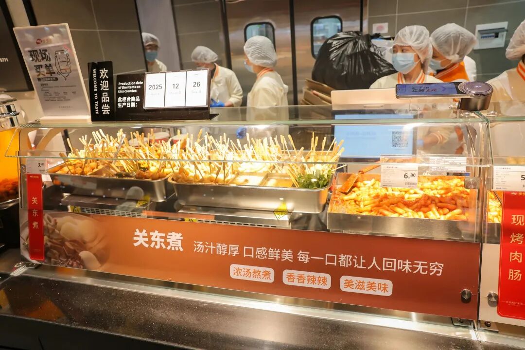 暖食區(qū)全新擴(kuò)容,中央廚房現(xiàn)制烘焙區(qū)每日飄出麥香,軟歐包、酥皮點(diǎn)心帶著剛出爐的溫?zé);現(xiàn)煮烤腸、魚(yú)蛋、關(guān)東煮、炒年糕組成暖心熱食矩陣,“現(xiàn)做現(xiàn)饗”的配置,在湘潭步步高門(mén)店中獨(dú)樹(shù)一幟。