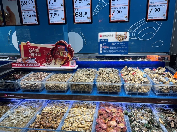 在全面提升商品品質(zhì)的同時,門店堅定不移地踐行“優(yōu)質(zhì)平價”的承諾。對于高頻民生商品,永輝通過供應鏈優(yōu)化確保在同等品質(zhì)下價格更優(yōu),讓品質(zhì)生活無需高價。以江寧寶龍店為例,蔬果區(qū)的霜打白菜售價0.79元/斤,七寶青0.99元/300g,砂糖橘3.99元/斤,五谷雜糧蛋20枚9.9元,水產(chǎn)區(qū)鮮活淡水鱸魚13.9元/條,鮮活花蛤每斤7.9元。