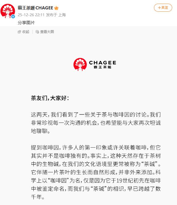 霸王茶姬深陷咖啡因輿情,官方下場(chǎng)回應(yīng)定音