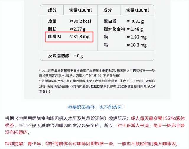 但由于個(gè)體差異性的存在,青少年、孕婦等特殊群體往往會(huì)對(duì)咖啡因更加敏感。就像有些人喝濃茶后會(huì)“茶醉”睡不著一樣,部分消費(fèi)者喝奶茶也會(huì)出現(xiàn)相似的身體反應(yīng)。