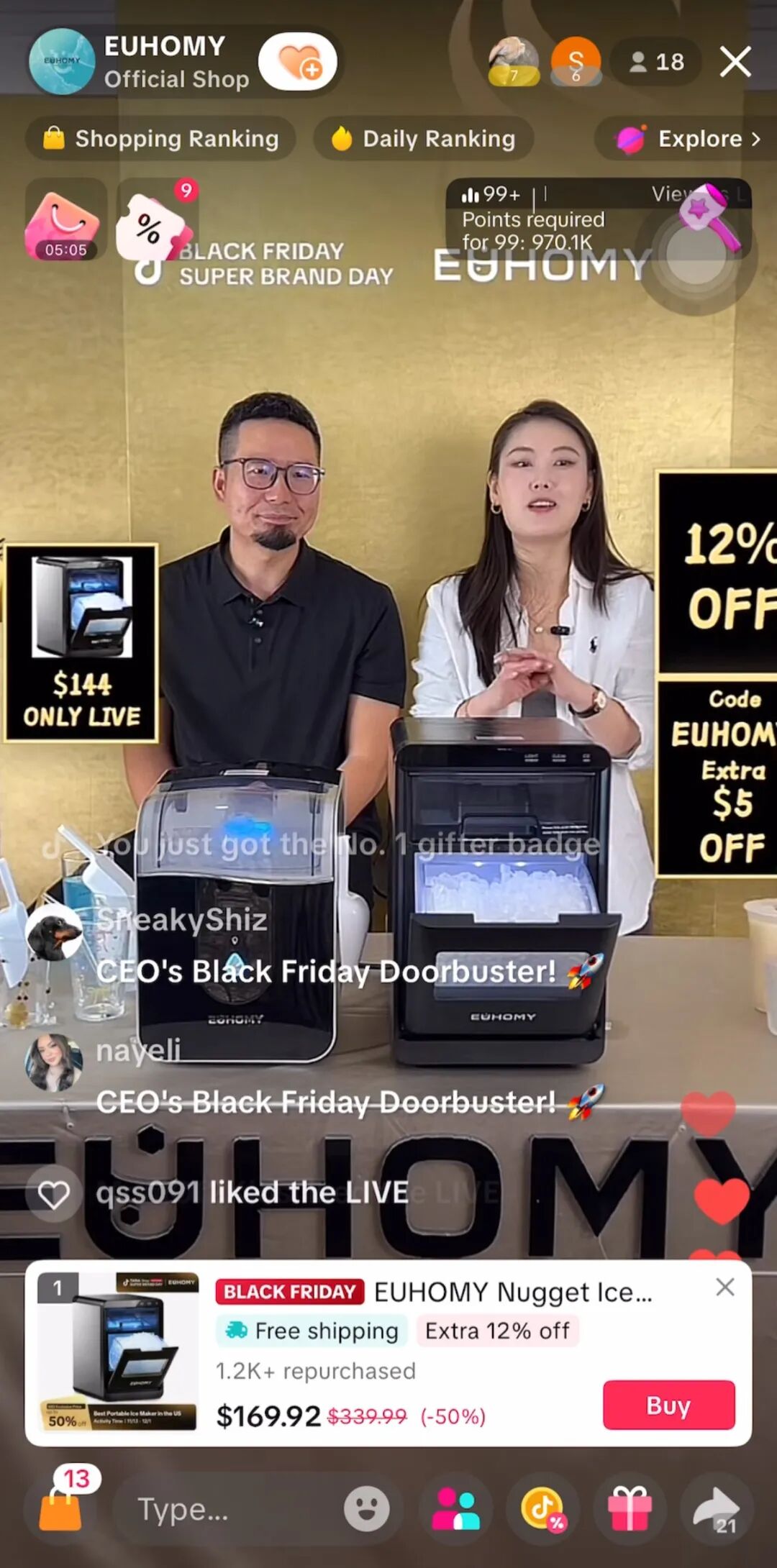 以智能家電商家EUHOMY為例。EUHOMY針對(duì)美國家庭的用冰需求研發(fā)新款制冰機(jī),黑五超級(jí)品牌日期間更是首發(fā)“App遠(yuǎn)程遙控咀嚼冰”;他們把新品賣點(diǎn)巧妙地植入露營、派對(duì)等生活場景,形成強(qiáng)效種草;這還不夠,為了給新品和過往爆款制造更大的聲量,EUHOMY策劃CMO亮相直播間講解產(chǎn)品等營銷事件,真誠地與粉絲溝通,拉滿信任感,同時(shí)還聯(lián)動(dòng)電視購物頻道推出專題廣告、在線下舉辦美食節(jié),讓產(chǎn)品用起來、被看見。