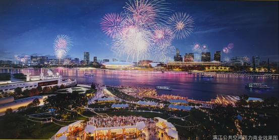 浦江之心利用了世博濱江與黃浦濱江區(qū)域眾多的文化演藝設(shè)施,以及大尺度的濱江綠地公園,在浦江兩岸核心區(qū)域,打造了一座互為對稱的舞臺與觀演空間的盛會場所。
