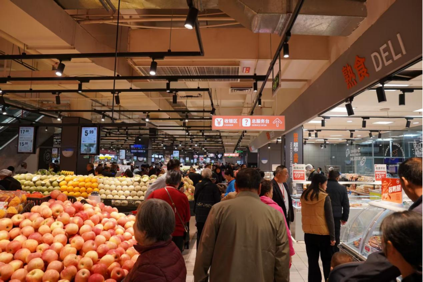 優(yōu)化后的商品結(jié)構(gòu)品質(zhì)顯著提升:進(jìn)口商品占比達(dá)13%,約1100支精選全球好物;一二線品牌商品達(dá)5300支,筑牢品質(zhì)基石;同時(shí)引入30余支DL商品與58支自有品牌商品,強(qiáng)化特色與高質(zhì)價(jià)比優(yōu)勢(shì)。整體商品組合高效呈現(xiàn)“優(yōu)質(zhì)平價(jià)”核心理念,在提升品質(zhì)體驗(yàn)的同時(shí),堅(jiān)守民生基本盤。例如,蔬菜區(qū)0.99元/斤的白蘿卜、2.99元/斤的黃瓜;水果區(qū)阿克蘇蘋果5.99元/斤、6.99元/斤的耙耙柑;水產(chǎn)區(qū)鮮活草魚8.8元一條、明蝦29.9元/斤,消費(fèi)者可以輕松找到多款高質(zhì)價(jià)比的惠民商品。