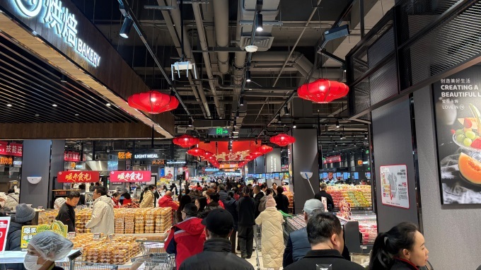 熟食烘焙區(qū)是社區(qū)煙火氣與生活魅力的集中展示窗口,調(diào)改后大幅增加了現(xiàn)制現(xiàn)售商品比例。熟食區(qū)主推的椒鹽蹄髈、避風塘羅氏蝦等硬菜,滿足家庭加餐需求。備受喜愛的25粒草莓奶油盒子蛋糕,精選當季草莓,搭配蓬松戚風與輕脂奶油,口感層次豐富。山茶花山泉吐司采用低糖低油配方,精選優(yōu)質(zhì)原料,通過長時低溫發(fā)酵激發(fā)天然麥香。