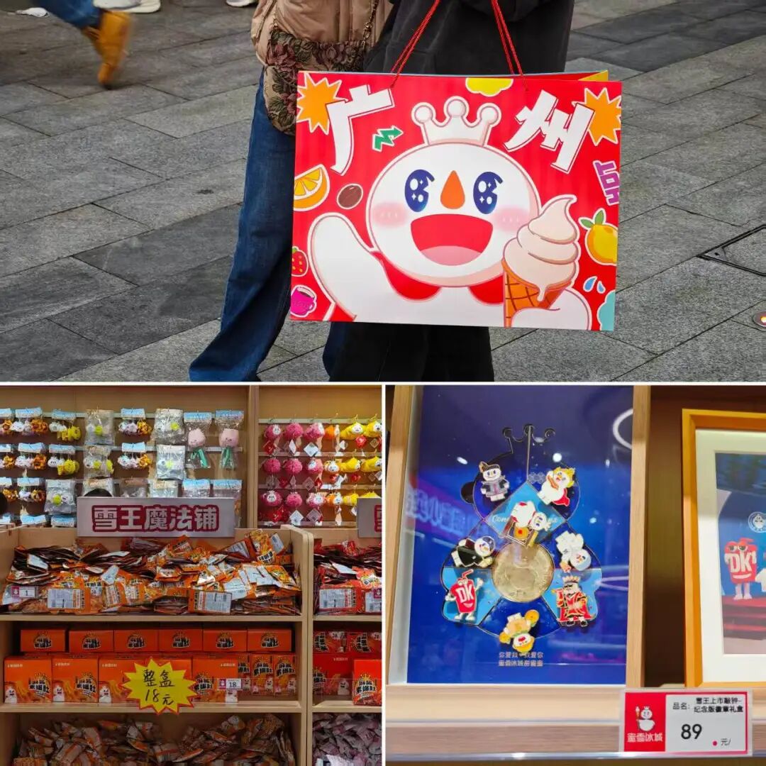 買完東西的年輕人,拎著印著“廣州”的超大雪王購物袋走在街上,非常霸氣,活脫脫就是行走的廣告牌。