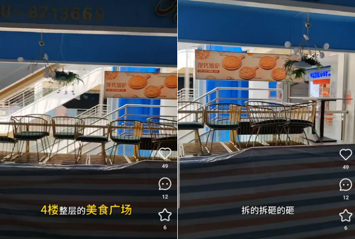 日前,一位河北承德的二手餐飲設(shè)備回收商在其小紅書賬號上發(fā)布了一段視頻。畫面里,當(dāng)?shù)啬成虉鏊臉堑牟惋媴^(qū)空無一人。博主在視頻里稱空曠到“鞋底摩擦地面的聲音都格外刺耳”。據(jù)他描述,整整一層,三十多個餐飲檔口已全部停業(yè),灶具和桌椅雜亂地堆疊在一起。