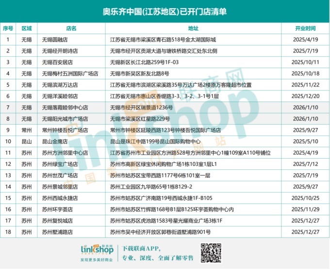 屆時,奧樂齊在無錫的門店數(shù)將達到8家,江蘇市場的門店總數(shù)達18家。