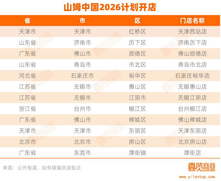 具體看,2026年,山姆將首進(jìn)河北省,在石家莊開出首店,填補了在京津冀城市群中河北一側(cè)的空白,完善了華北布局;山東省一次性進(jìn)入兩個核心城市,包括濟(jì)南、青島,能有效覆蓋山東半島;佛山連進(jìn)兩區(qū);同時,向經(jīng)濟(jì)強(qiáng)勁的縣級市乃至城鎮(zhèn)下沉,進(jìn)入全國百強(qiáng)縣江陰市,落子?xùn)|莞經(jīng)濟(jì)強(qiáng)鎮(zhèn)厚街鎮(zhèn)。
