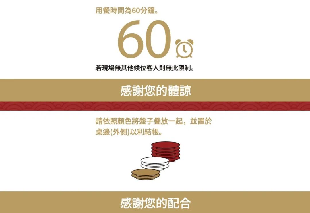 壽司郎不僅軍事化管理食材,消費者來了也要軍訓,500平米的大店疊加堪比付費自習室的空間利用,一次最多能容納365人[7],翻臺率也進一步提高,高峰期能達到10~15次/天,為了把流水線的運轉效率提高到極致,還會在每桌用餐1小時后委婉提醒。