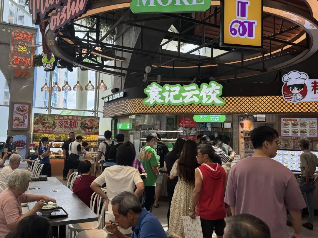 2025年12月22日,袁記云餃在新加坡裕廊坊的新店“低調(diào)”開業(yè)。這是一家“食閣店”(位于食閣內(nèi)的檔口店),由于沒有熱鬧的儀式,現(xiàn)場看不出新店開業(yè)的痕跡,就像周圍的每個老檔口一樣接待著來往顧客。