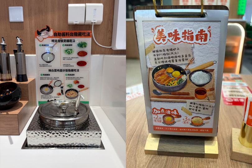 當鐵板瞬間發(fā)出“滋滋”聲響,顧客親手將小菜、醬料與無菌蛋翻炒融合,這種DIY互動不僅制造了日式快餐稀缺的“鍋氣”,更將單純的進食轉(zhuǎn)化為了一場獨一無二的“五感體驗”。