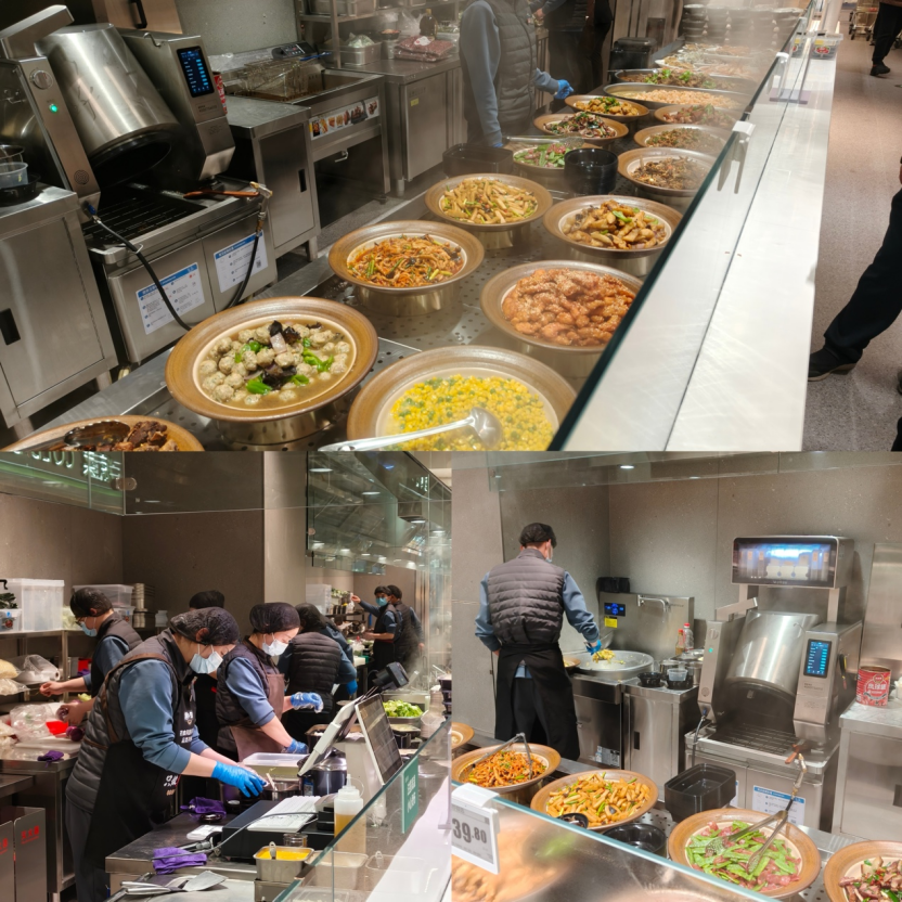 新增的現(xiàn)炒菜檔口則提供豐富菜品選擇,價(jià)格分為三檔:19.8元/500g、39.8元/500g、59.8元/500g,由炒菜機(jī)器人與工作人員現(xiàn)場炒制出鍋,兼顧效率與新鮮。