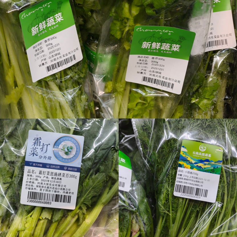 身為商務(wù)部認(rèn)定的“農(nóng)超對接”示范單位,大張的生鮮品類豐富度同樣頗具競爭力。除了產(chǎn)地直采的各類葉菜,店內(nèi)還引入云南分裝的高原菜,以及由深圳市東源興進(jìn)出口有限公司供應(yīng)的霜打菜等特色品類,滿足消費(fèi)者多元化需求。