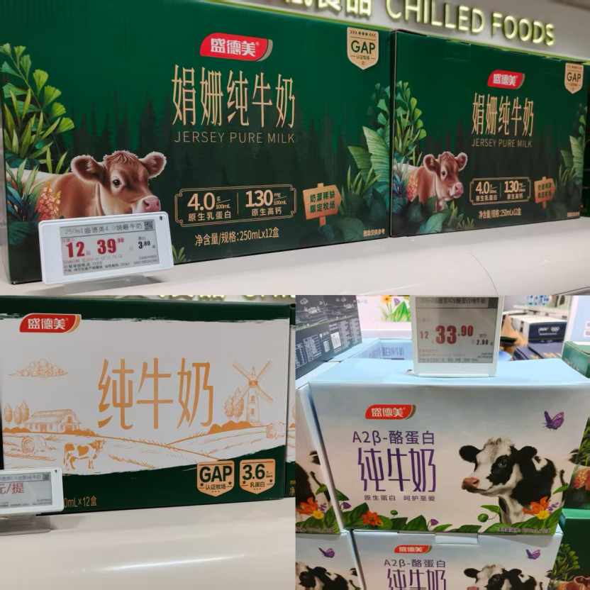 以乳制品為例,長申超市此前僅推出一款與君樂寶合作的低溫鮮牛奶,如今則新增多款常溫純牛奶單品,包括3.6g蛋白全脂純牛奶、娟姍純牛奶以及A2酪蛋白純牛奶等,滿足不同消費(fèi)群體的細(xì)分需求。