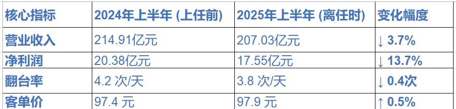 一年之后,海底撈2025年上半年業(yè)績顯示:整體營業(yè)收入為207.03億元,較去年同期減少3.7%;凈利潤17.55億元,同比減少13.7%;核心經(jīng)營利潤24.08億元,同比減少15%。