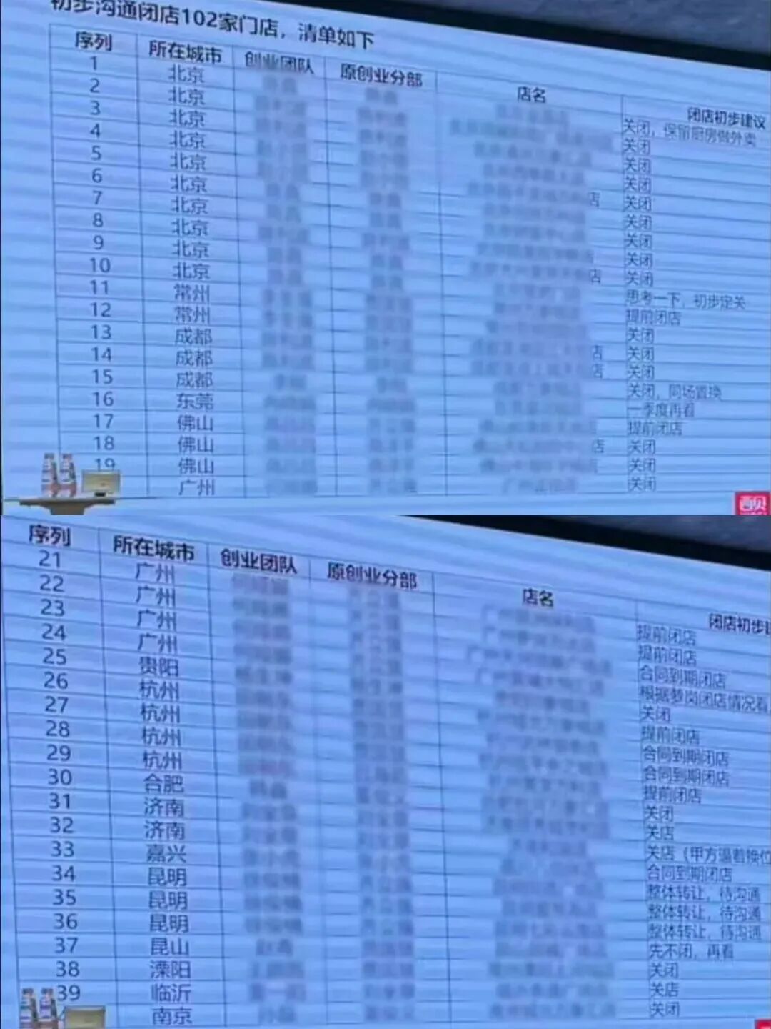 1月15日,社交平臺(tái)流傳了一份“西貝內(nèi)部會(huì)議資料及閉店清單”,涉及102家門店、約4000名員工。