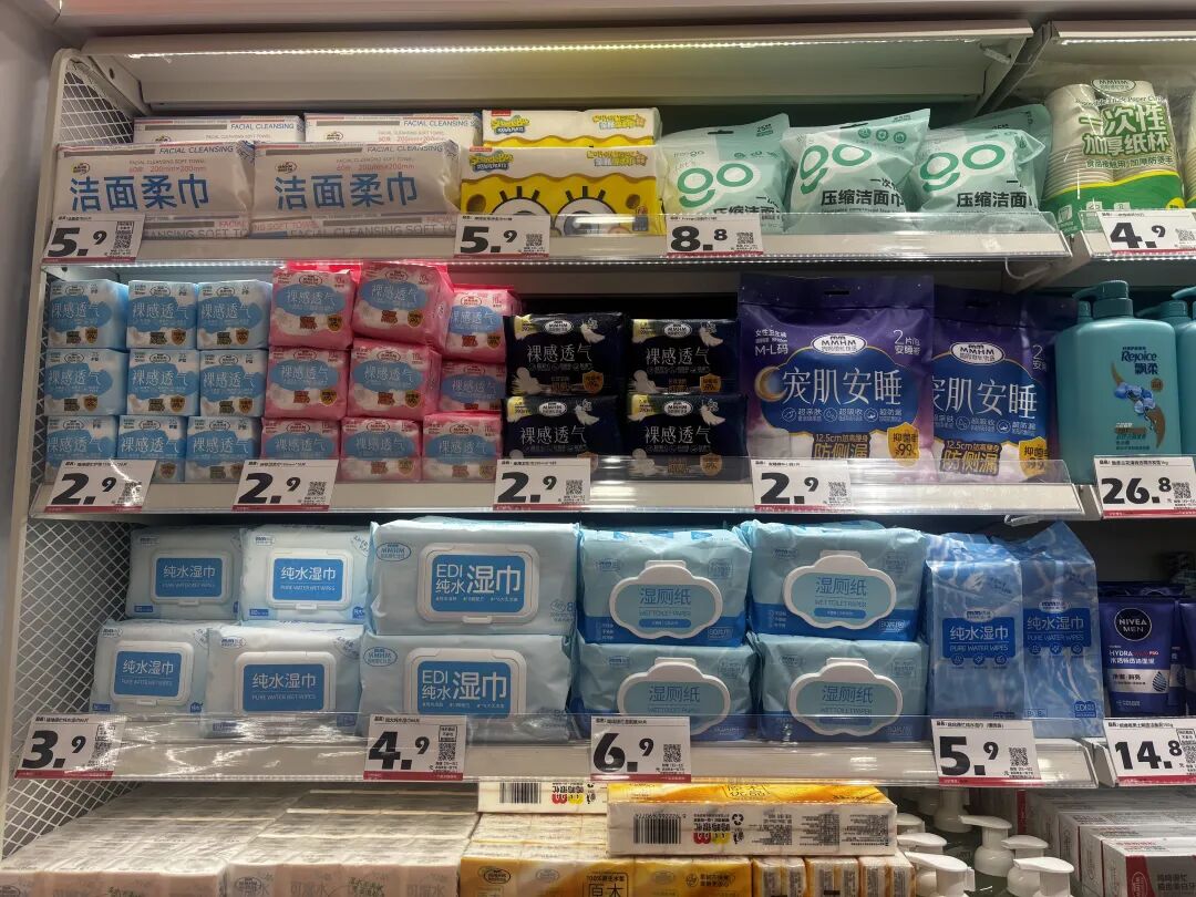 進(jìn)入北京一家開在社區(qū)邊的零食折扣店,表面是零食,實際上里面的商品百花齊放,2.9元的氣泡水、不到10元的大牌洗面奶,似乎萬物在零食折扣店都能打折。借著便宜的利刃,這些零食店闖入了便利店的生意,為北漂打工人帶來了更低價的商品。