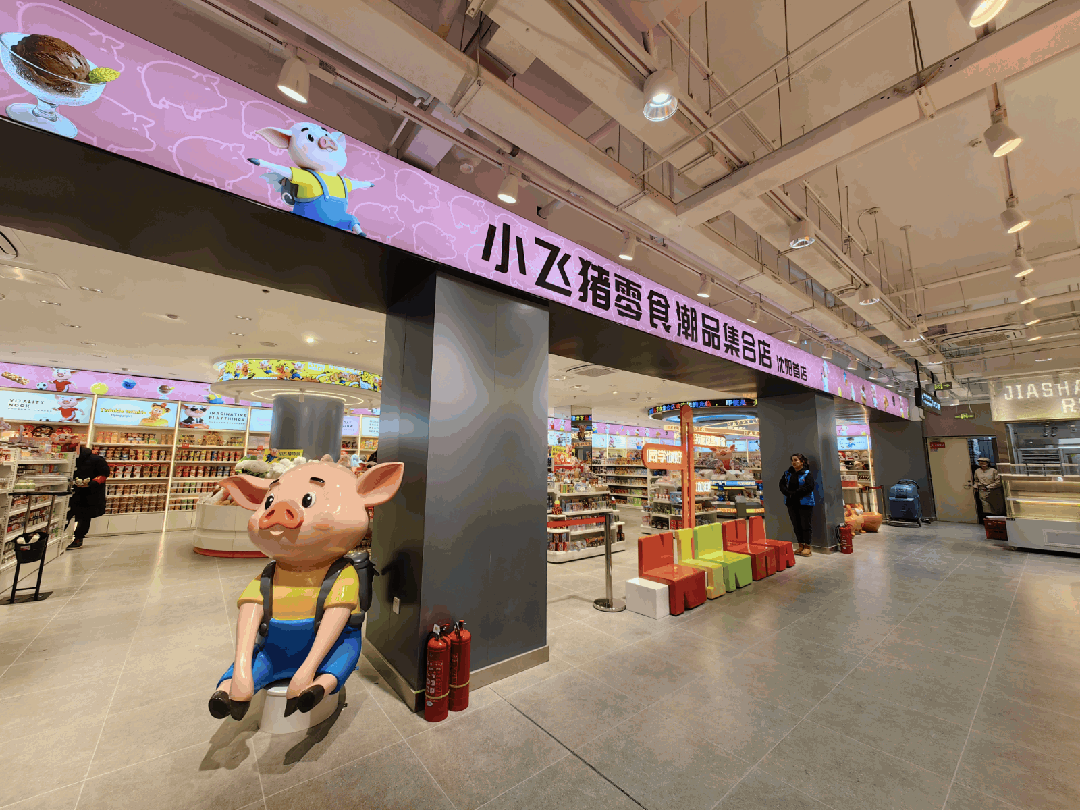 所以,為了進(jìn)一步增強(qiáng)差異化,寧山店開(kāi)設(shè)了獨(dú)立IP的“小飛豬零食潮品集合店”沈陽(yáng)首店,集合了各種IP聯(lián)名零食、個(gè)性飲料、軟萌玩偶、個(gè)性文具、潮流卡牌、手辦盲盒、微醺小酒等潮酷品類(lèi)單品,深受年輕消費(fèi)者的喜愛(ài)。
