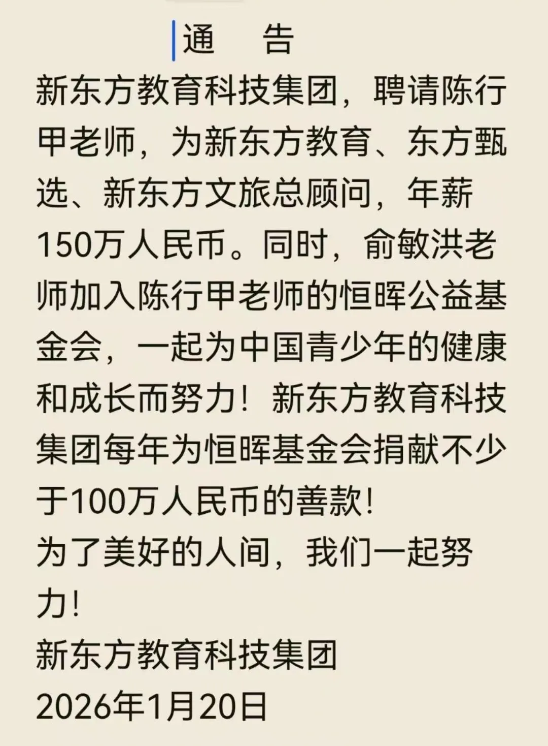 前段時間,俞敏洪公開宣布以150萬元年薪聘請陳行甲擔任集團旗下教育、文旅、東方甄選三大板塊的總顧問。