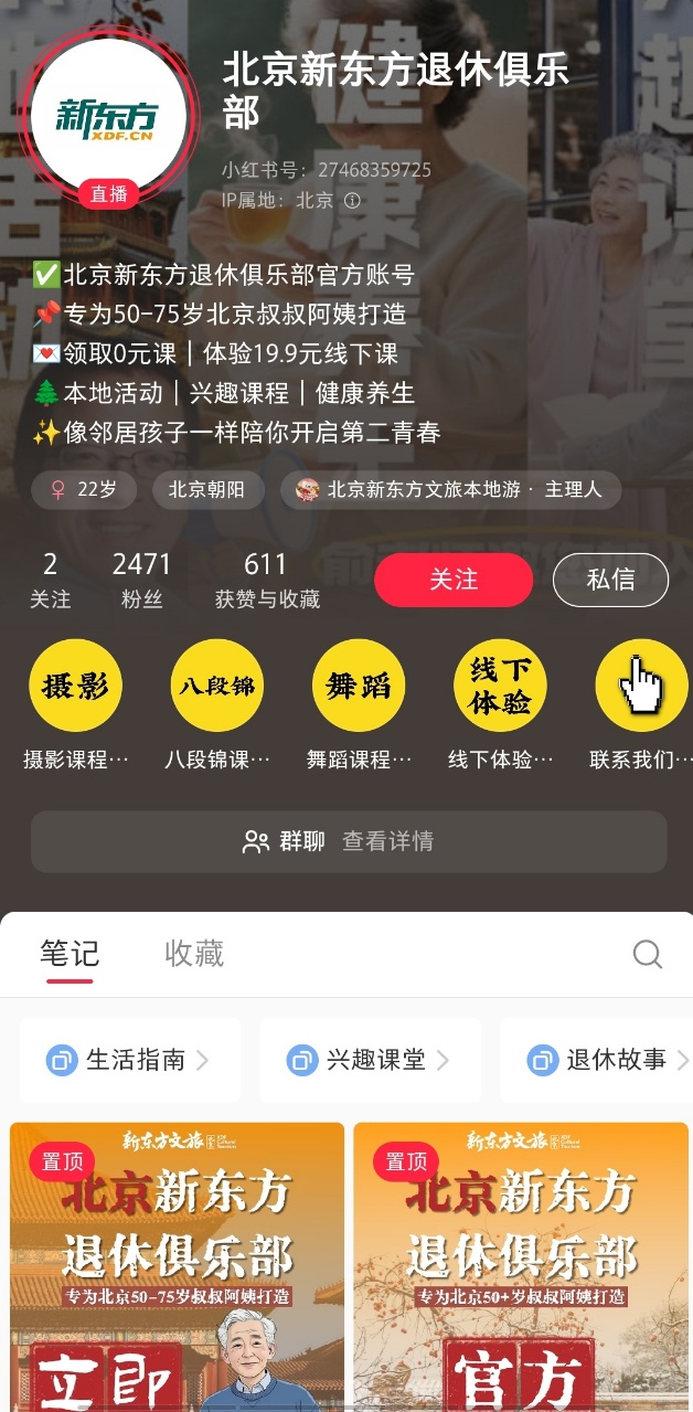 近日,“北京新東方退休俱樂部”賬號在抖音、小紅書等社交平臺正式亮相。