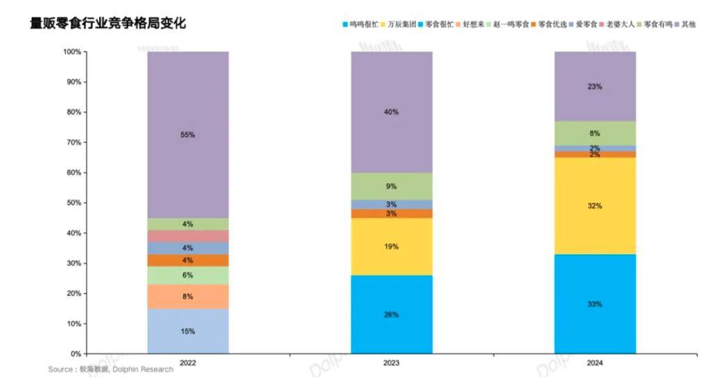 鳴鳴很忙幾乎完整走完了量販零食行業(yè)從野蠻生長(zhǎng)到高度集中的全過(guò)程。