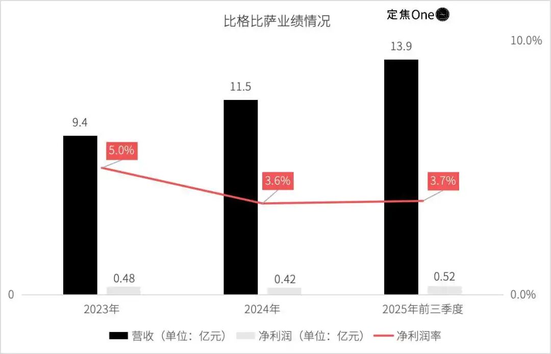 2023年至2024年,比格比薩營收從9.4億元增至11.5億元,同比上漲22.3%,但凈利潤從4751.8萬元下滑至4173.7萬元,降幅達12.2%,業(yè)績呈現(xiàn)出典型的“增收不增利”。