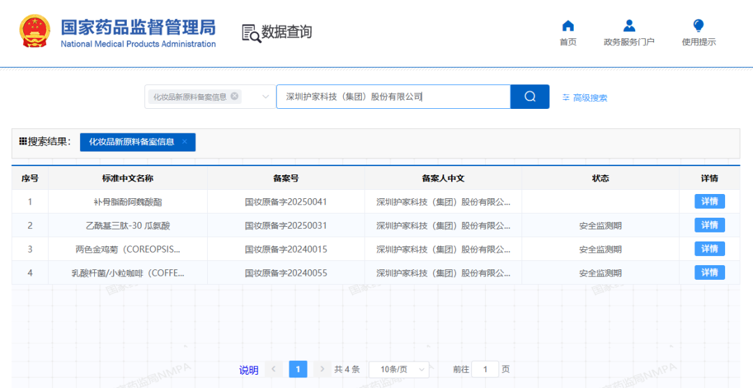 此外,值得注意的是,其在原料端也有不錯(cuò)的表現(xiàn)。據(jù)國家藥監(jiān)局顯示,截至目前,HBN母公司護(hù)家科技共備案了4款原料,其中3款處于“安全監(jiān)測(cè)期”。另根據(jù)灼識(shí)咨詢報(bào)告,截至2025年9月30日,在中國國產(chǎn)護(hù)膚品品牌中,HBN的自主研發(fā)化妝品新原料備案數(shù)量排名第三。