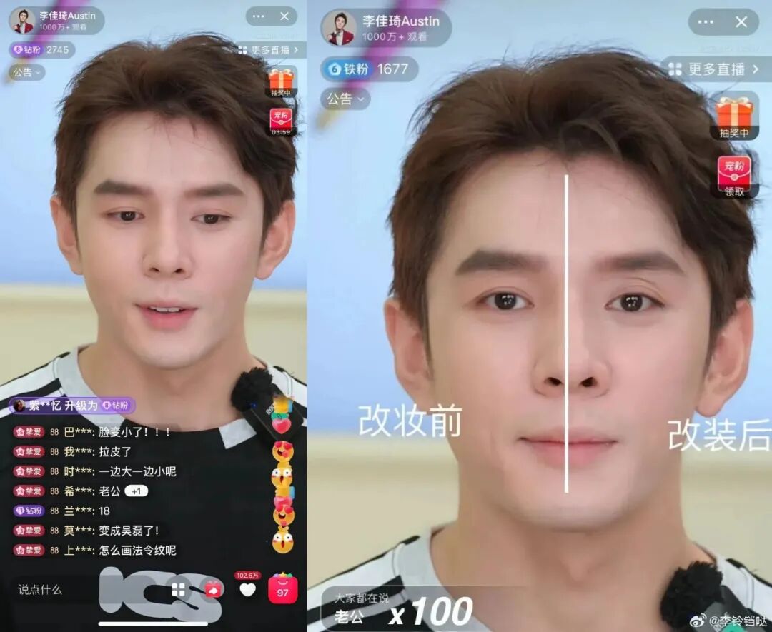 毛戈平在李佳琦直播間在線改妝