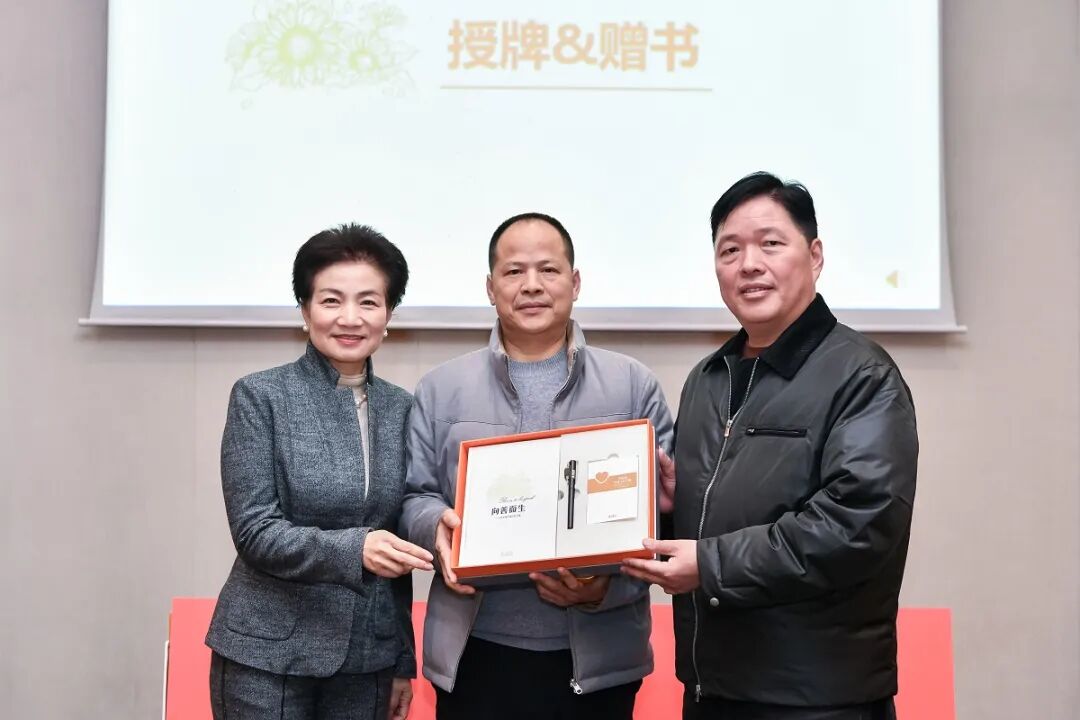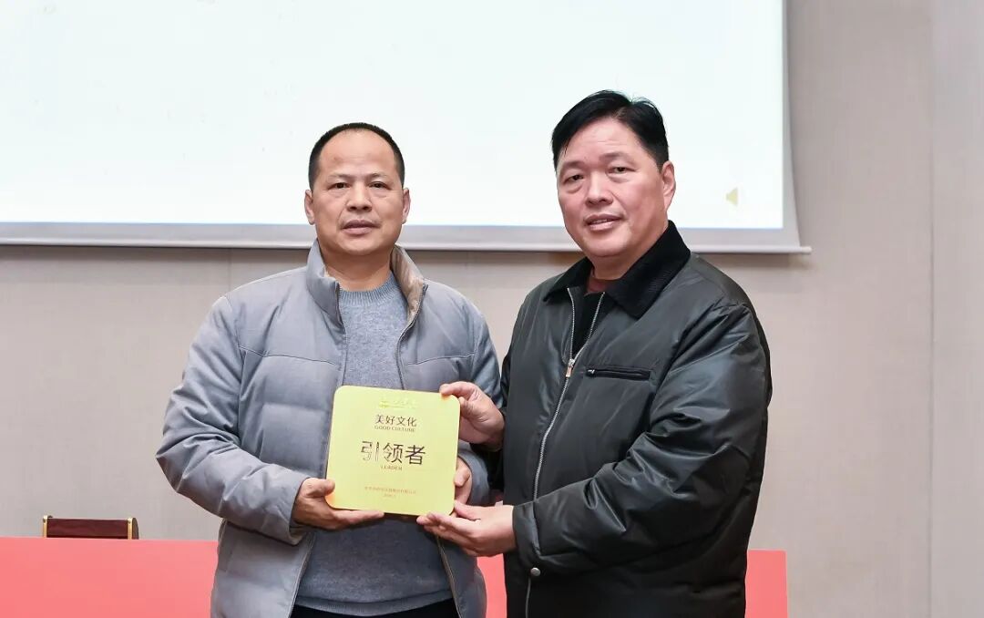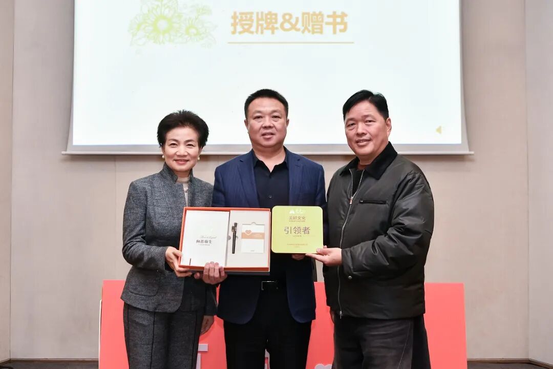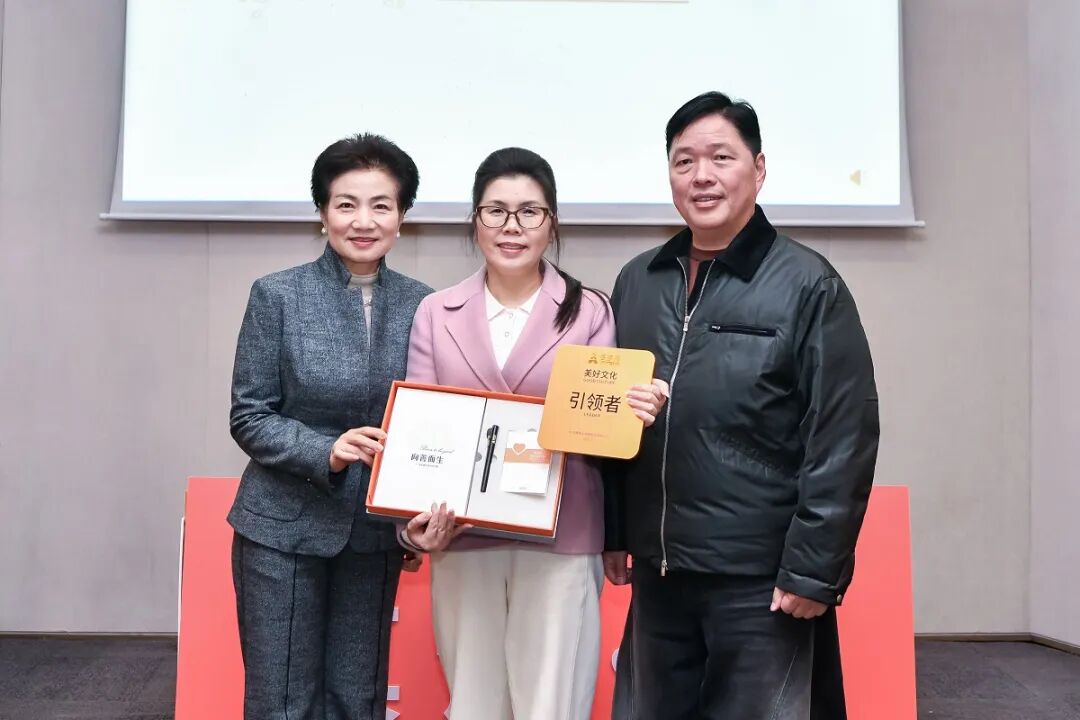 儀式現(xiàn)場(chǎng),燈光聚焦于承載著責(zé)任與期許的授牌環(huán)節(jié)。董事長(zhǎng)王填、聯(lián)合創(chuàng)始人張海霞,共同將刻有美好文化引領(lǐng)者的牌匾,以及文化共創(chuàng)成果“三件套”鄭重授予三位輪值總裁——這不僅是一份榮譽(yù)的加冕,更是一次精神的傳遞,象征著文化傳承的使命從核心層延伸至每一個(gè)執(zhí)行終端。