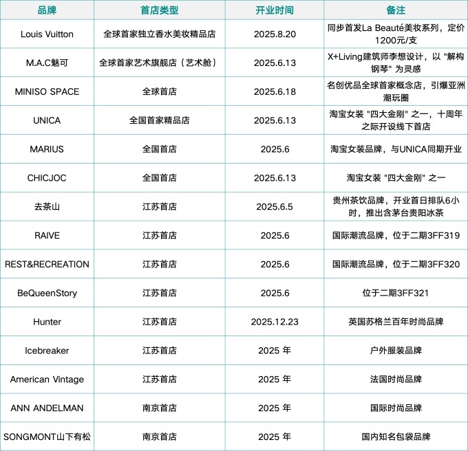 2025年南京德基廣場引進(jìn)的部分首店品牌表: