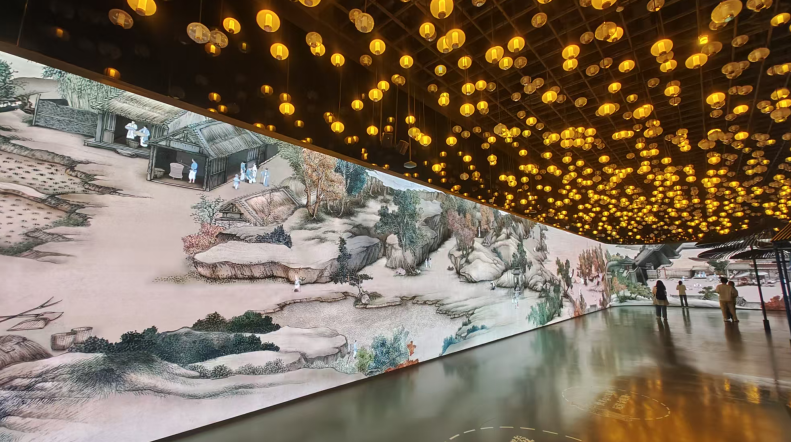 其集大成者是德基藝術(shù)博物館的沉浸式互動展《金陵圖》。借助AR、VR技術(shù),觀眾可以“走入”宋代畫作,與533個古代人物實(shí)時(shí)互動。累計(jì)超120萬人次的接待量、超2.2億的線上曝光,形成了“先看金陵圖,再逛南京城”的城市級文化IP?匆粓稣褂[,成為逛德基的一個全新理由,文化消費(fèi)與商業(yè)消費(fèi)形成了完美的閉環(huán)。