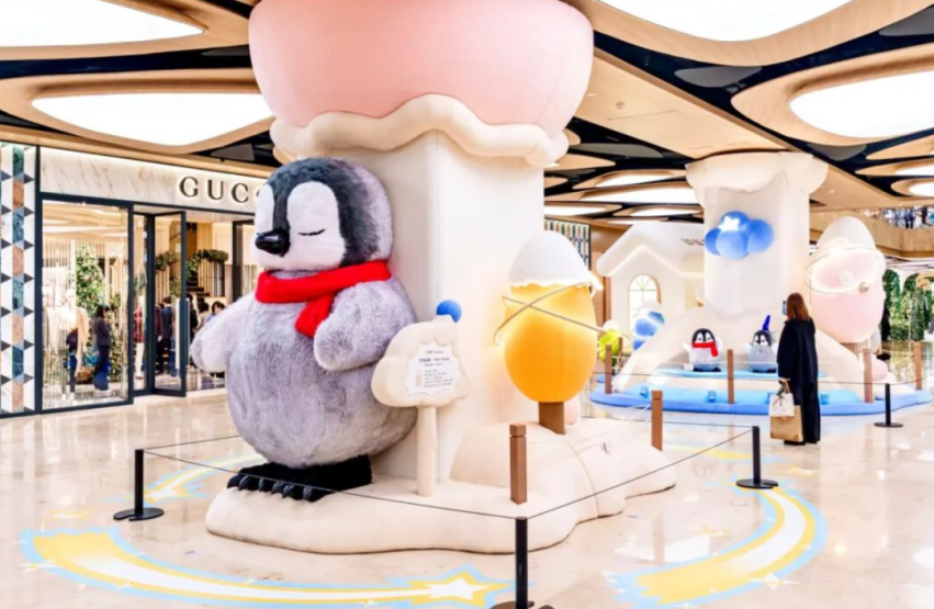 其策略核心清晰有力:IP賦能、互動貫穿、AI驅(qū)動。全年圍繞10大節(jié)點(diǎn)落地25場主題活動中,德基嫻熟地運(yùn)用IP魔法:新春的“靈動萌蛇”、周年慶的《玩具總動員》奇幻樂園、年末的“YOMeeDoll小企鵝”專屬娃衣……這些IP不僅是裝飾,更是制造社交貨幣、引發(fā)情感共鳴的利器。