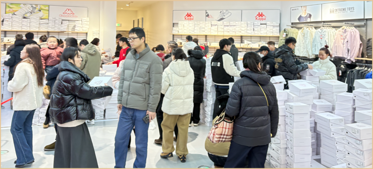 京東奧萊宿遷中央商場(chǎng)店經(jīng)營(yíng)面積超3000平方米,匯聚100余個(gè)國(guó)際一線及知名品牌,涵蓋輕奢服飾、運(yùn)動(dòng)潮流、鞋履箱包等多元品類,入駐品牌有蔻馳、MK、耐克、阿迪達(dá)斯、亞瑟士、安德瑪、彪馬、凱蒂貓、卡帕、黑鯨、愛(ài)華仕、薩拉曼、瑞士軍工等。門店以“低至1折”的核心優(yōu)勢(shì),同步推出線上線下聯(lián)動(dòng)優(yōu)惠:抖音平臺(tái)450代500元全場(chǎng)通用券、卡帕運(yùn)動(dòng)鞋149元任選兩雙等上線當(dāng)天銷售7000+,中央商場(chǎng)疊加補(bǔ)貼的“450元升500元、80元升100元”活動(dòng)更是點(diǎn)燃消費(fèi)熱情,收銀臺(tái)與試衣間前持續(xù)排起長(zhǎng)隊(duì)。