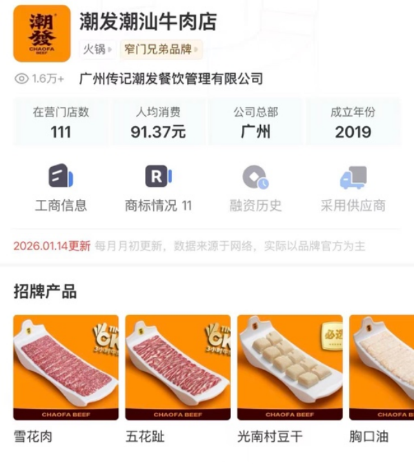 目前,潮發(fā)的門店超過100家,同時(shí)還布局有“九畝地牛肉火鍋”等子品牌。此外,除了終端經(jīng)營外,潮發(fā)還將業(yè)務(wù)拓展到供應(yīng)鏈以及投資領(lǐng)域。
